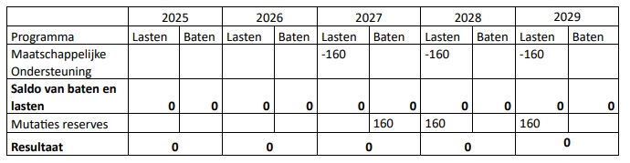 2. Daarom de lasten van het programma Maatschappelijke Ondersteuning vanaf 2027 structureel te verlagen met € 160.000.