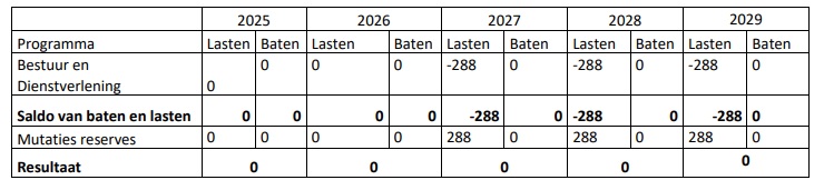 - Daarom de lasten van programma 1 Bestuur & Dienstverlening vanaf 2027 structureel met 288.000 te verlagen.
